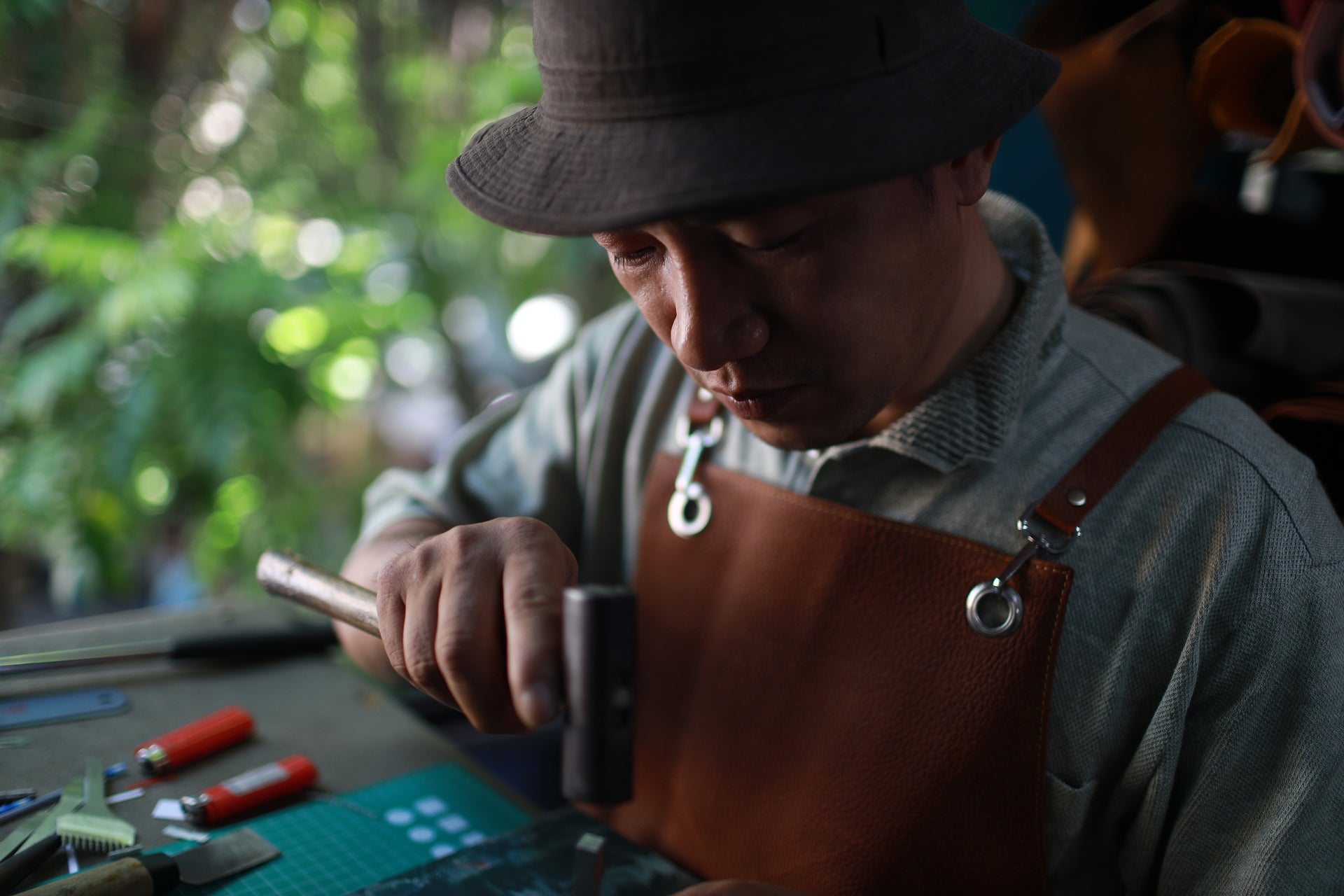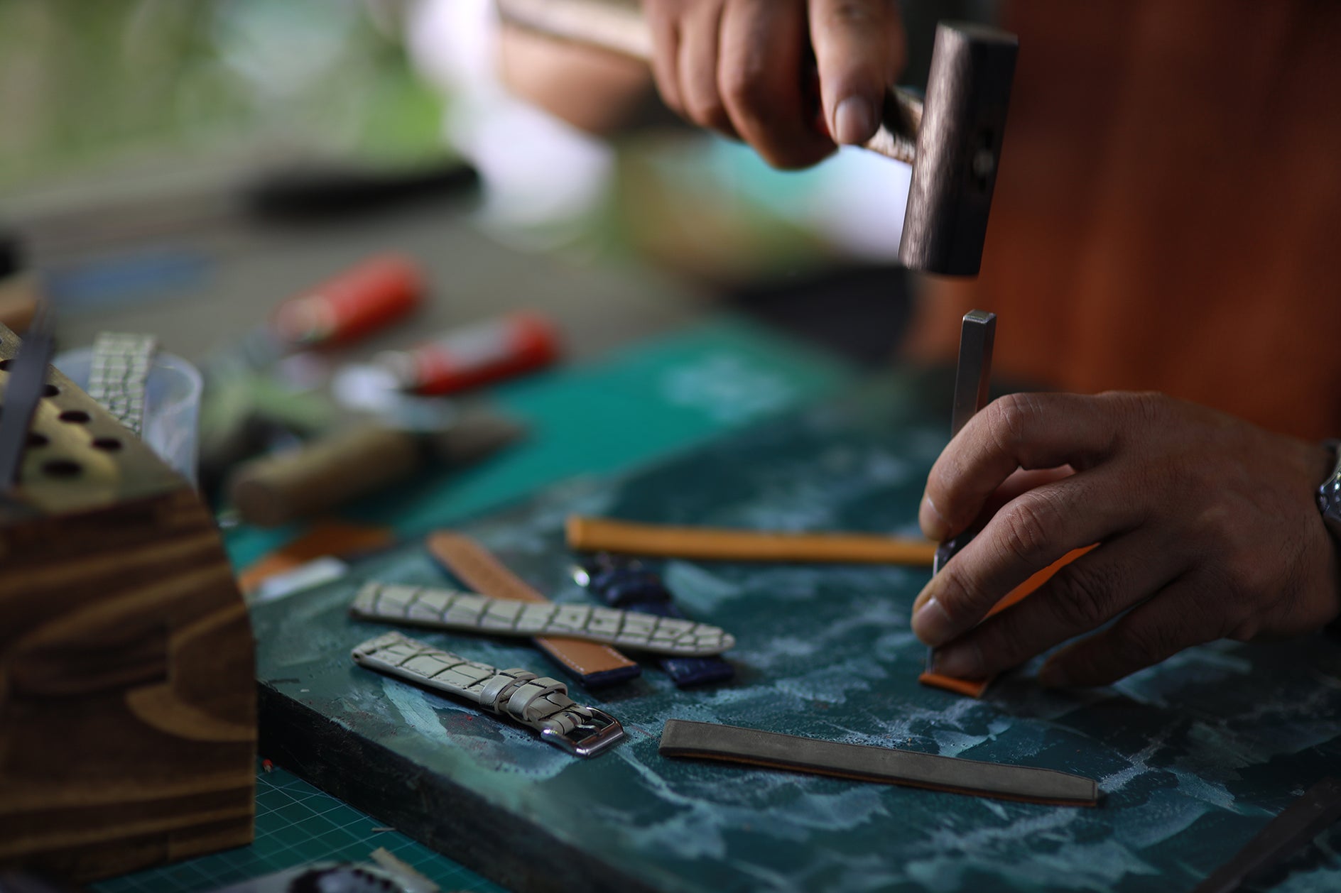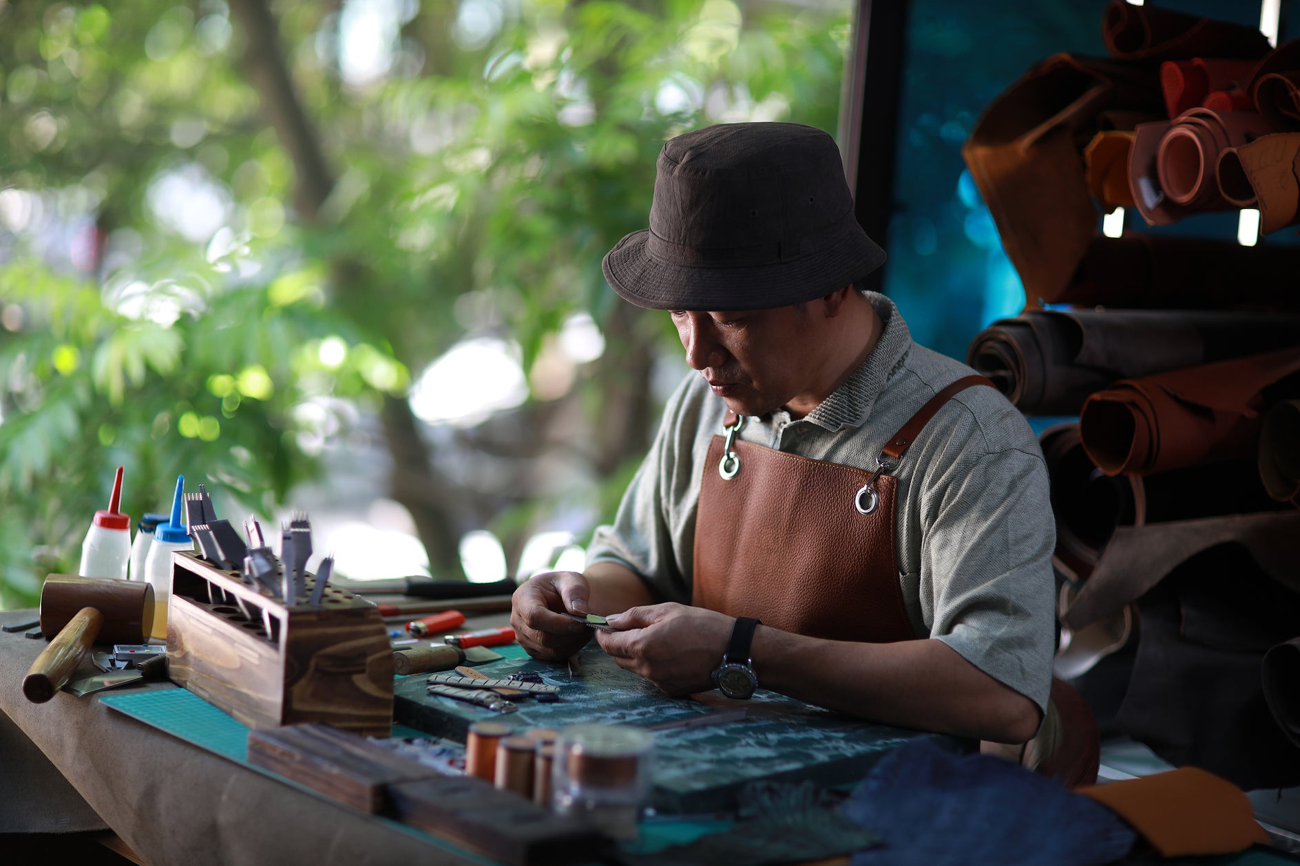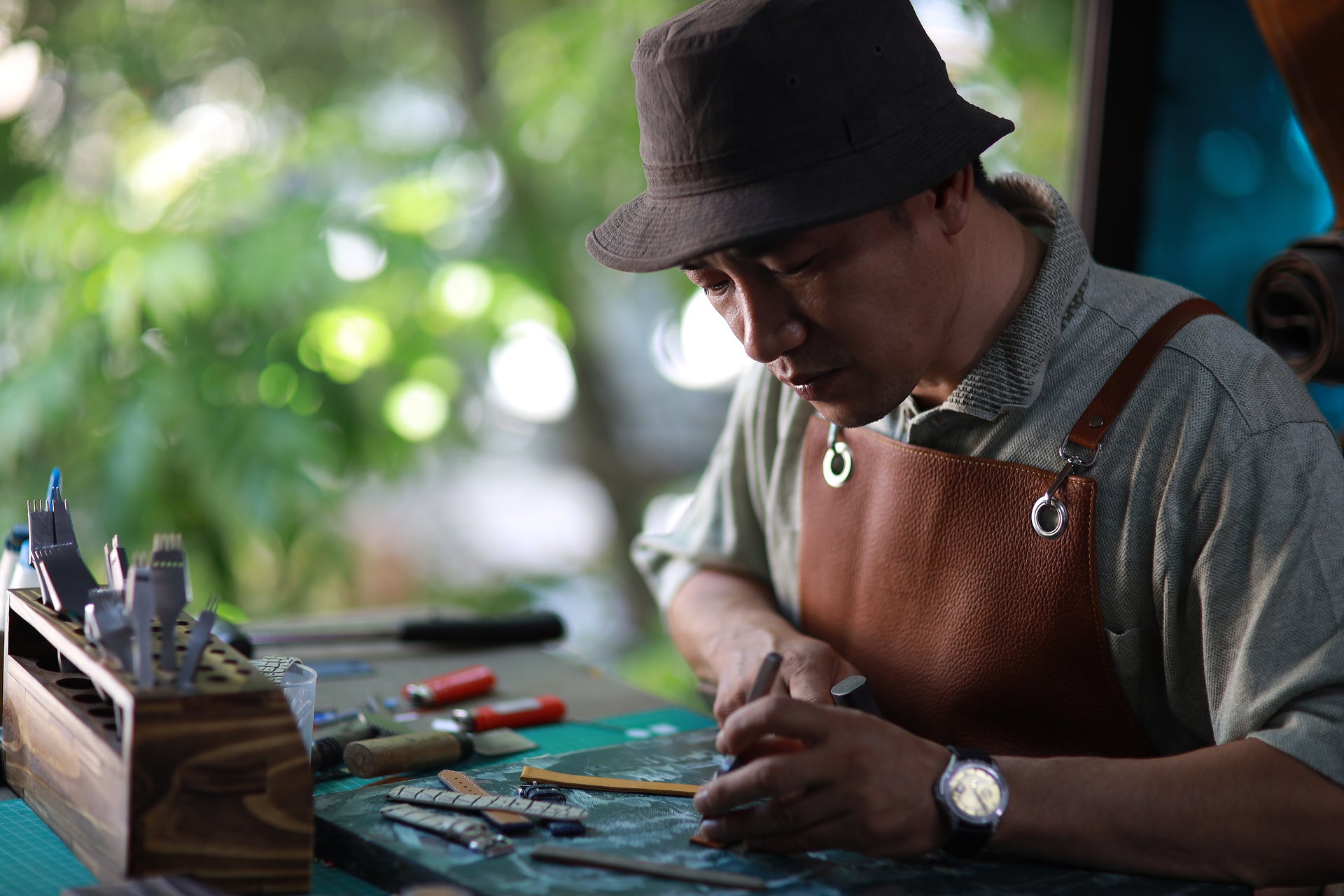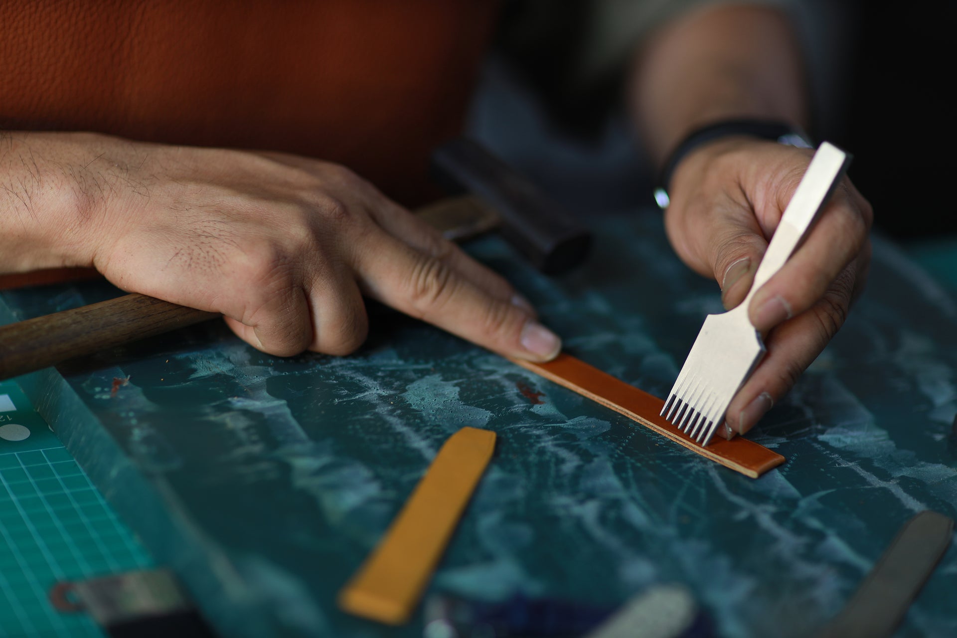 We use high-quality full-grain leather, known for its durability, natural texture, and ability to develop a rich patina over time.